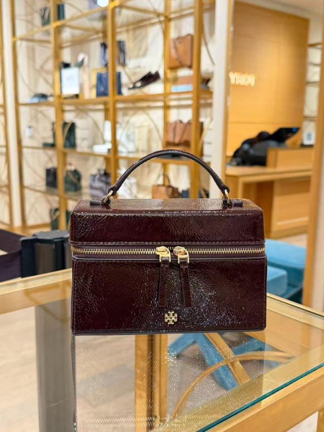 Tory Burch Emerson crinkle vanity bag 盒仔包 (啡)