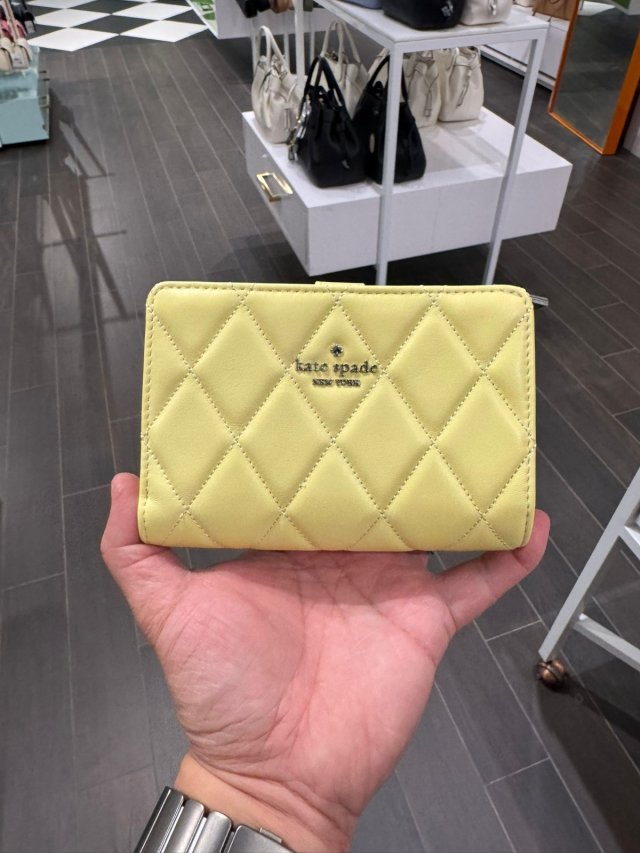 Kate Spade 菱格中銀包 Quilted Medium Bifold Wallet (檸檬黃 Lemon Fondant)