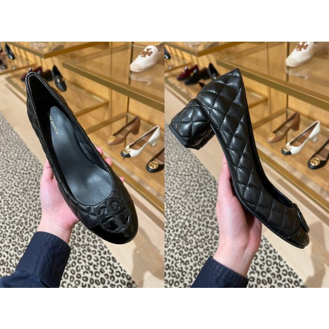 Tory Burch Chelsea 50mm Qulited Pump 菱格粗踭 (黑)