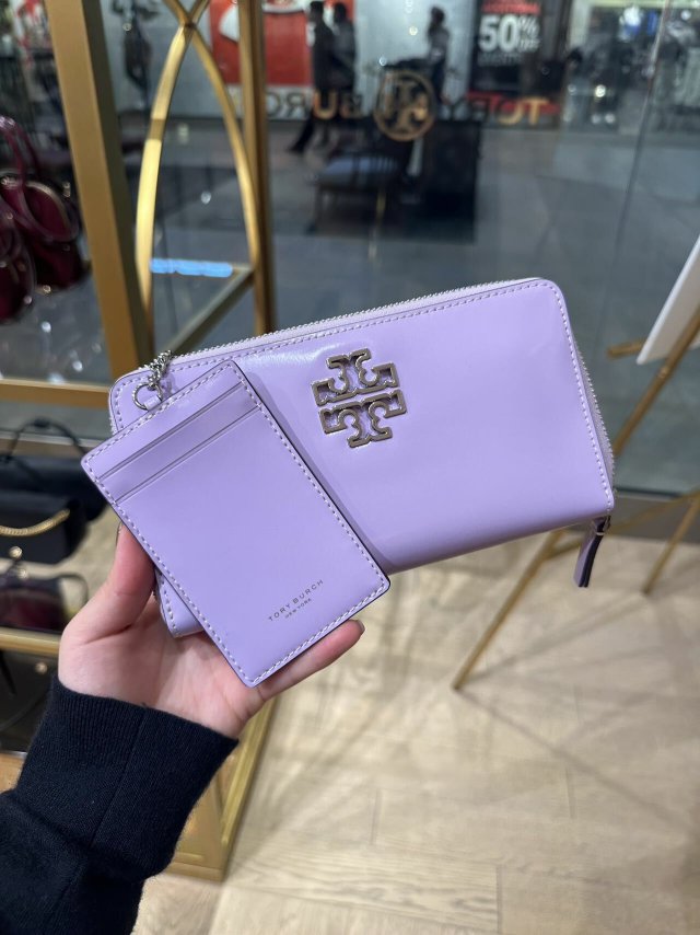 🈹️清貨 Tory Burch Britten zip continental wallet 拉鏈長銀包 (漆皮紫 Purple)