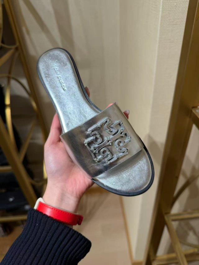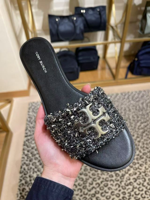 🈹清貨 Tory Burch Everly Slide (閃石毛呢灰 Silver Nickel)