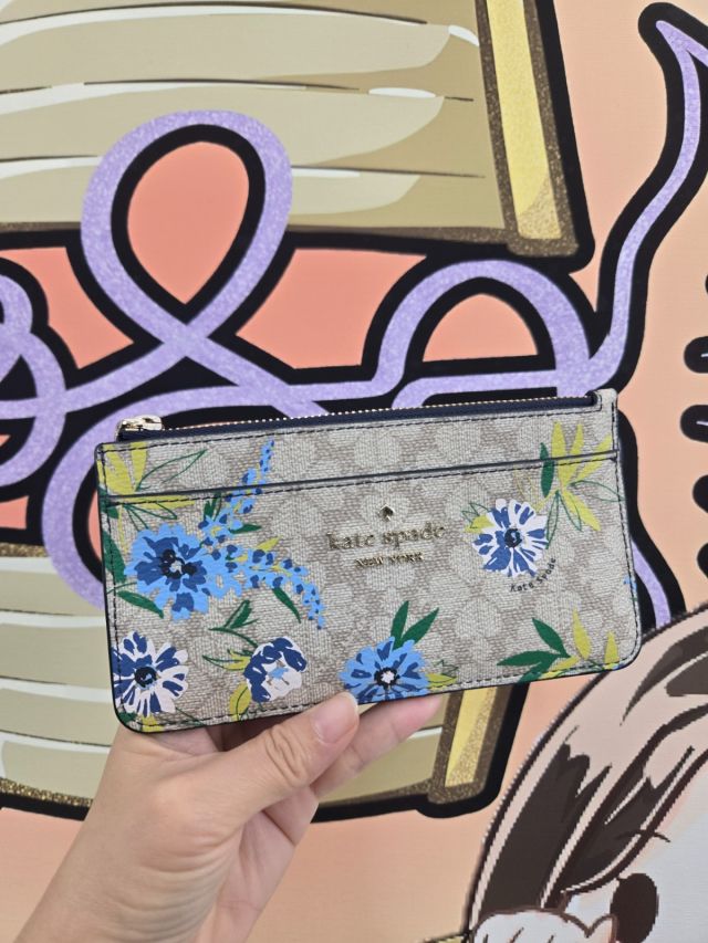 (香港現貨) 🈹️清貨 Kate Spade 長卡包 (滿版四葉草 x 花花 Blazer Blue Multi)