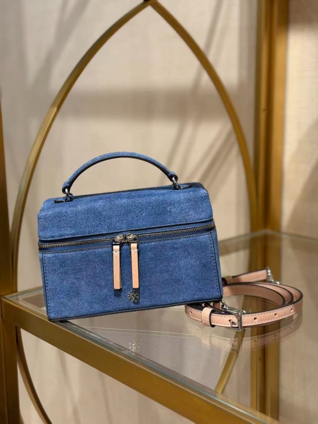 Tory Burch Emerson 盒子包 Vanity Bag (麂皮藍 Suede Printed Denim)
