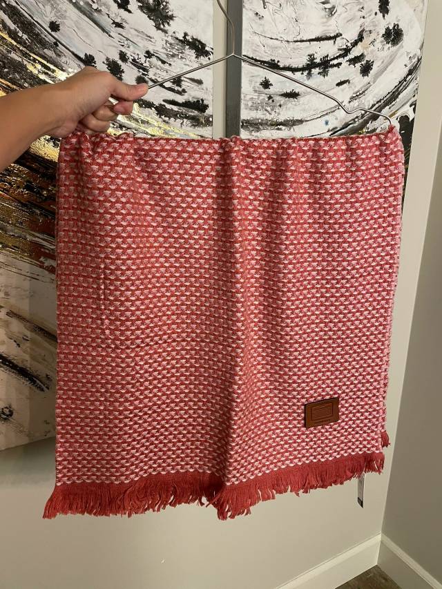 (加拿大現貨) Coach Multicolour Textured Blanket scarf 大方形羊毛毛毯/圍巾 (西瓜紅 x 白)