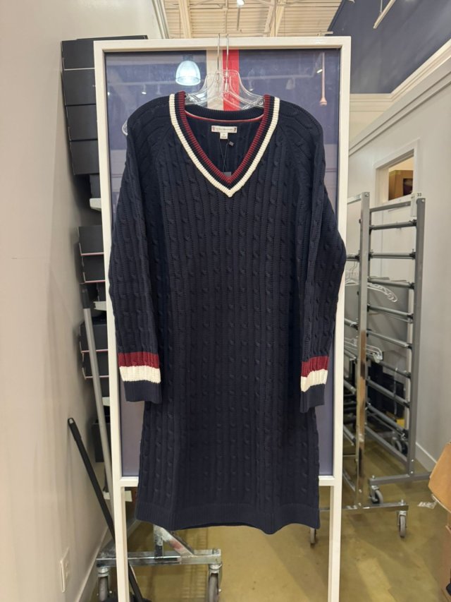 XW06304 TH 女裝V領針織連身裙 (400 深藍 Navy) One Piece