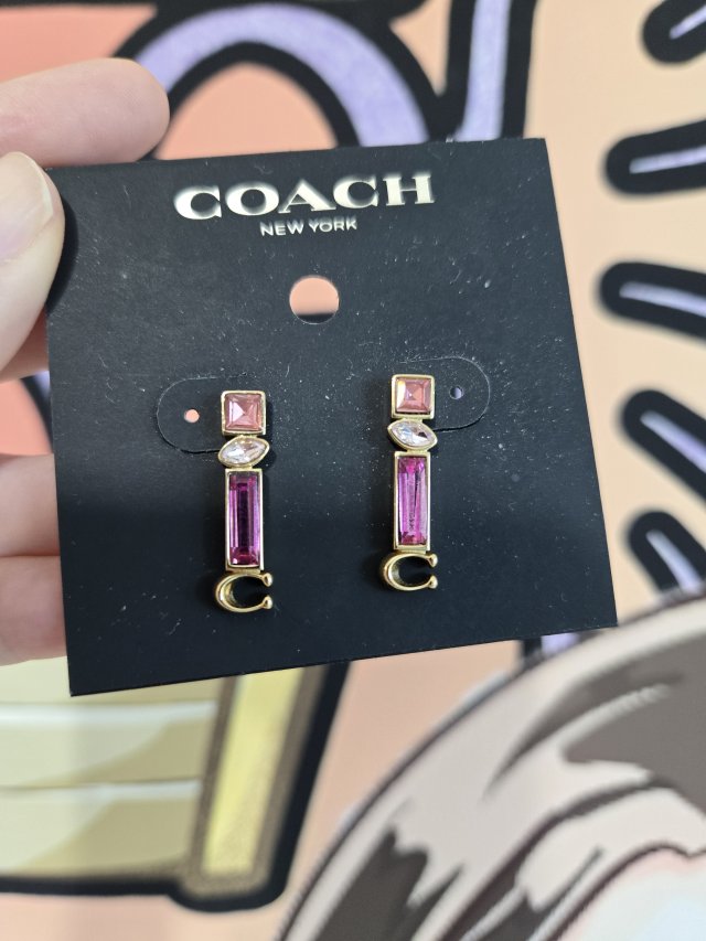 (香港現貨) Coach 水晶耳環 (C字長型 x 粉)