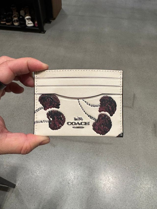Coach 櫻桃印花薄卡包 Slim Id Card Case (白 Chalk Cherry)