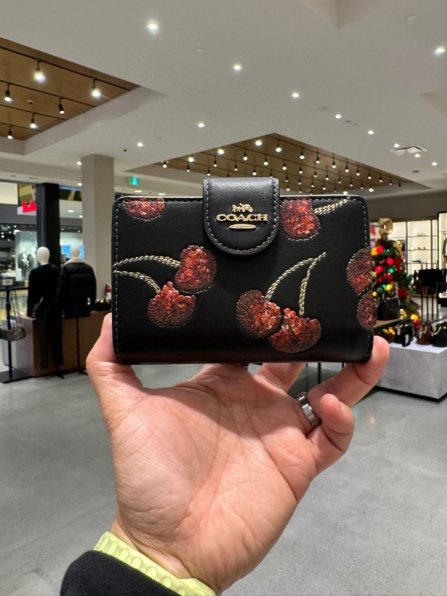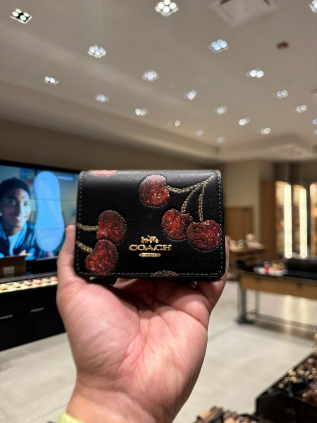 Coach 櫻桃印花中銀包 Medium wallet (黑 Black)