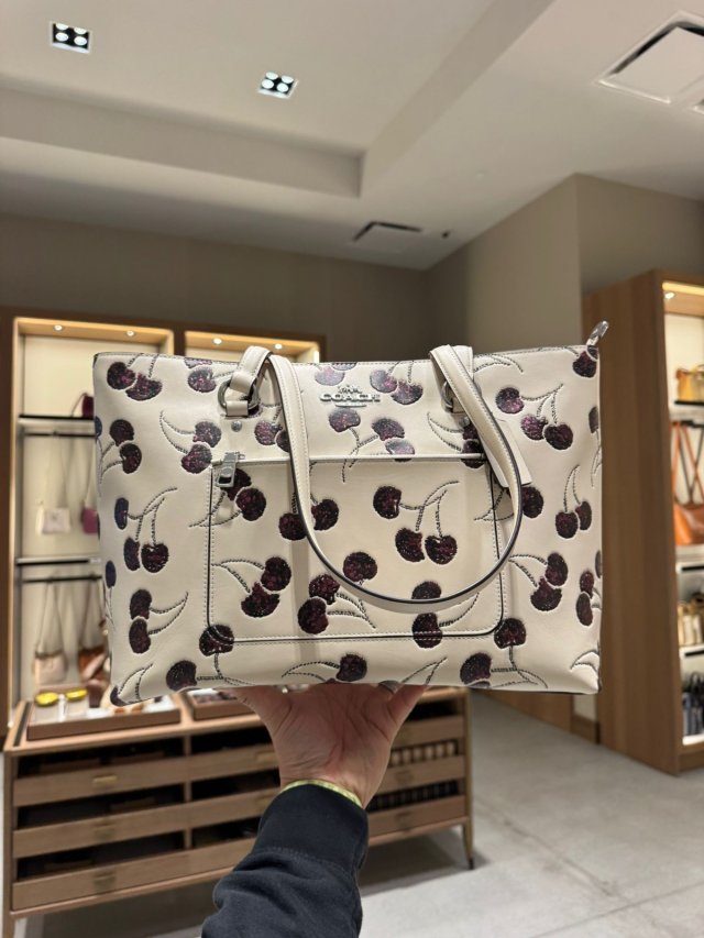 Coach 櫻桃印花拉鏈 Tote Station Tote Bag With Cherry Print (白 Chalk)
