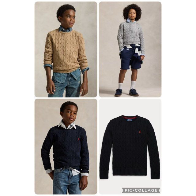 Polo RL 男童圓領針織 Cable Knit Cotton Sweater