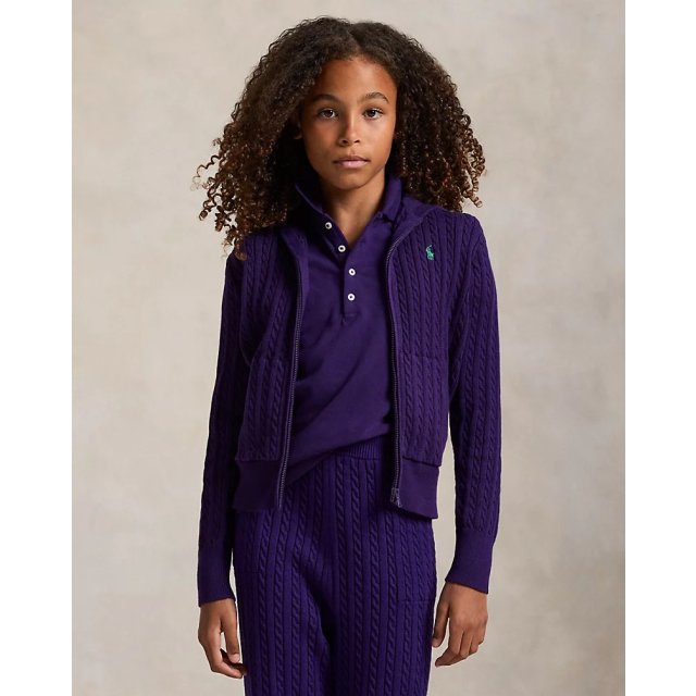 Polo 女童開胸針織 Mini-Cable Cotton Cardigan