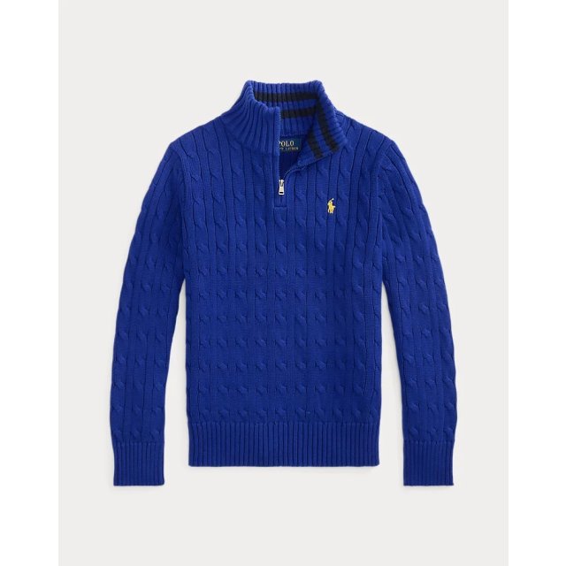 Polo RL 男童 Half Zip Cable Cotton Quarter Zip Sweater (藍 Classic Azure)
