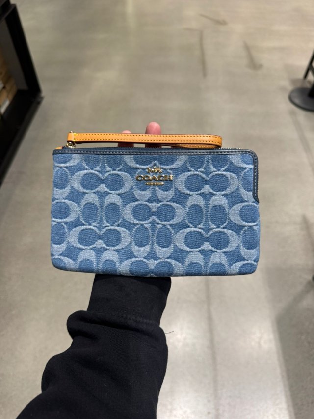 Coach 牛仔大單手拿 Large Corner Zip Wristlet In Signature Denim