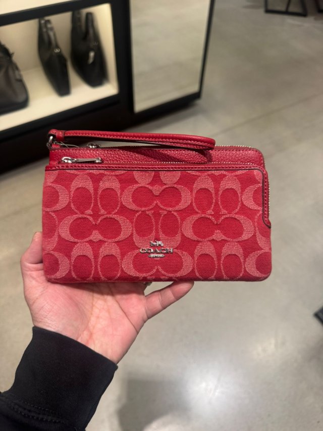 Coach 牛仔大雙手拿包 Double Zip Wallet In Signature Denim (紅 True Red)
