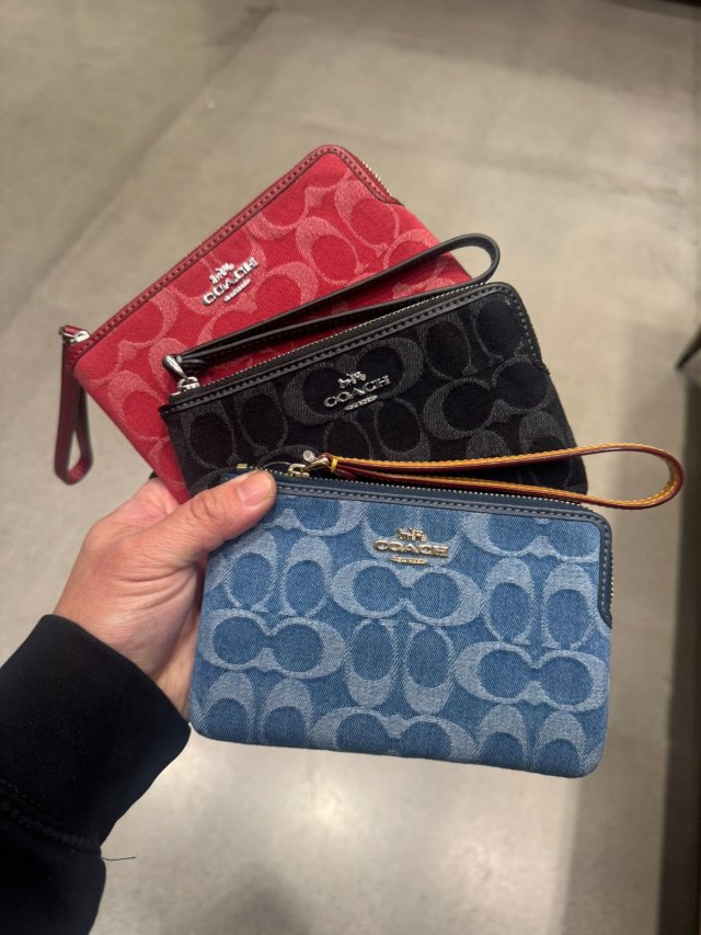 Coach 牛仔細單小手拿 Corner Zip Wristlet In Signature Denim