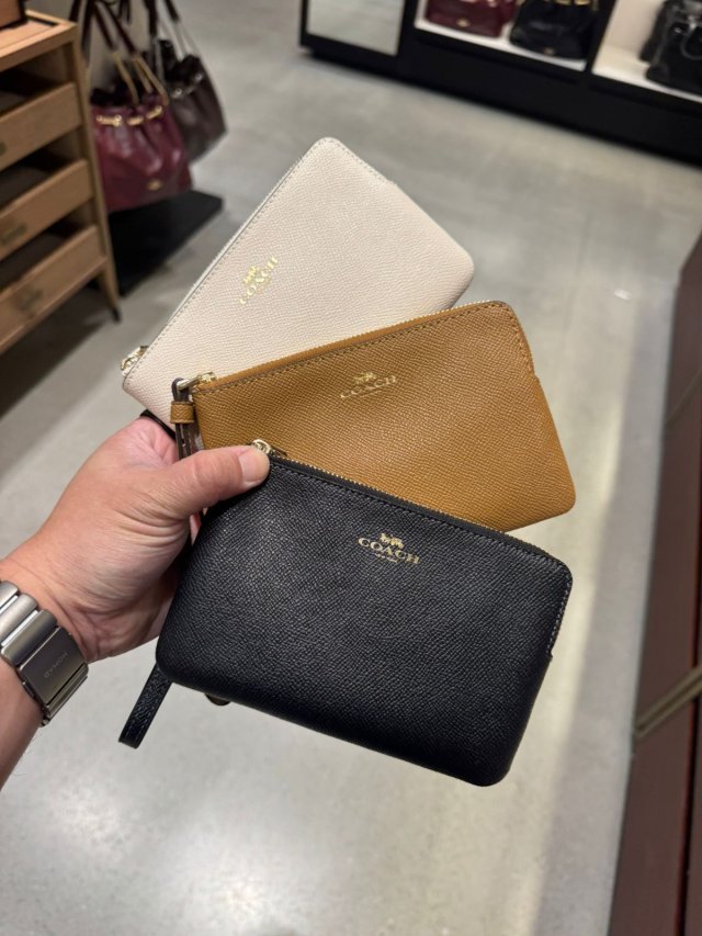 Coach 細單小手拿 Corner Zip Wristlet (素色)
