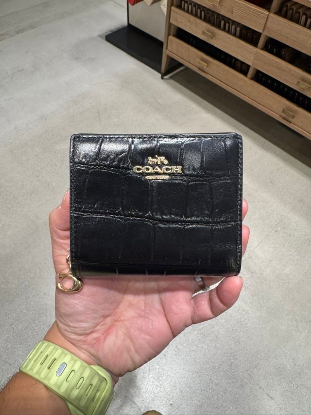 Coach Snap Wallet 女裝短銀包 (鱷魚壓紋黑 Croc Black)
