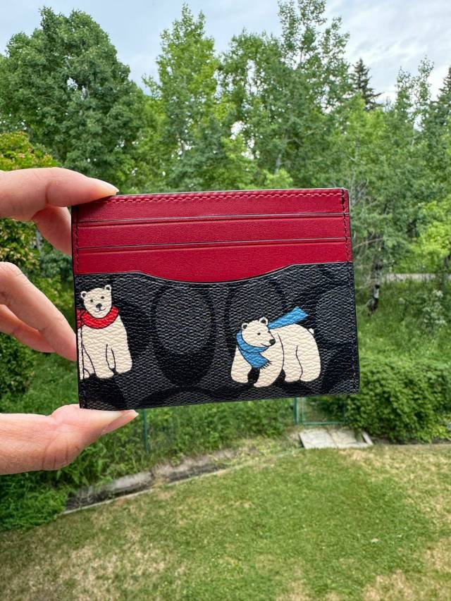 (加拿大現貨) Coach 薄卡包 (滿版黑 x 北極熊)