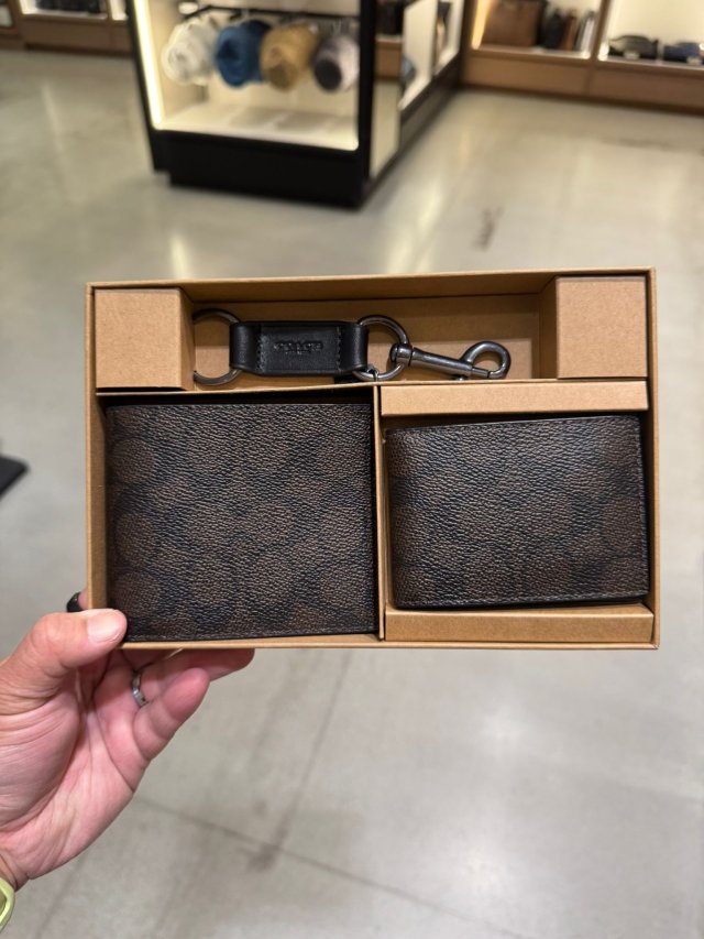 Coach 男裝1+1銀包 & 匙扣禮盒 (素啡)