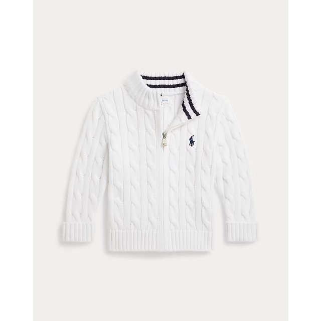 Polo RL 男童 Boy Cable-Knit Cotton Full-Zip Sweater (白 White)