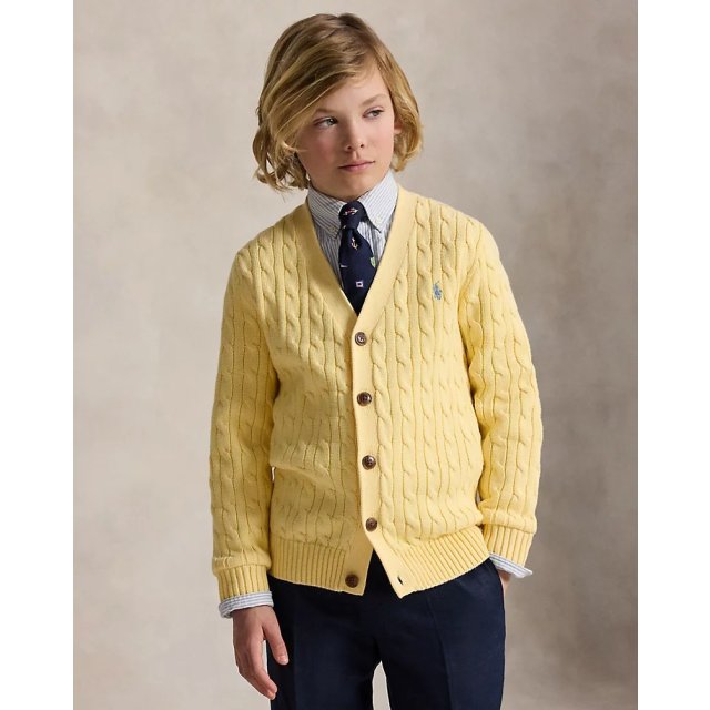 Polo RL Boy Cable-Knit Cotton V-Neck Cardigan