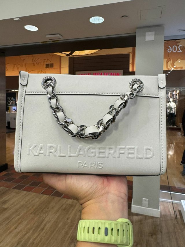Karl Lagerfeld Savoie Mini Crossbody With Chain Strap (White)