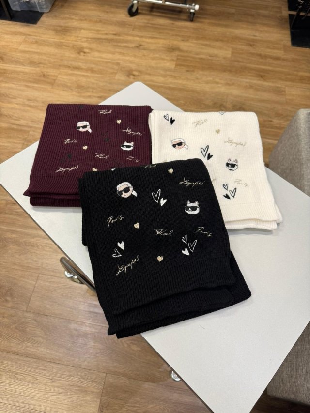 L5KS8131 Karl Lagerfeld Pin 多色刺繡圍巾