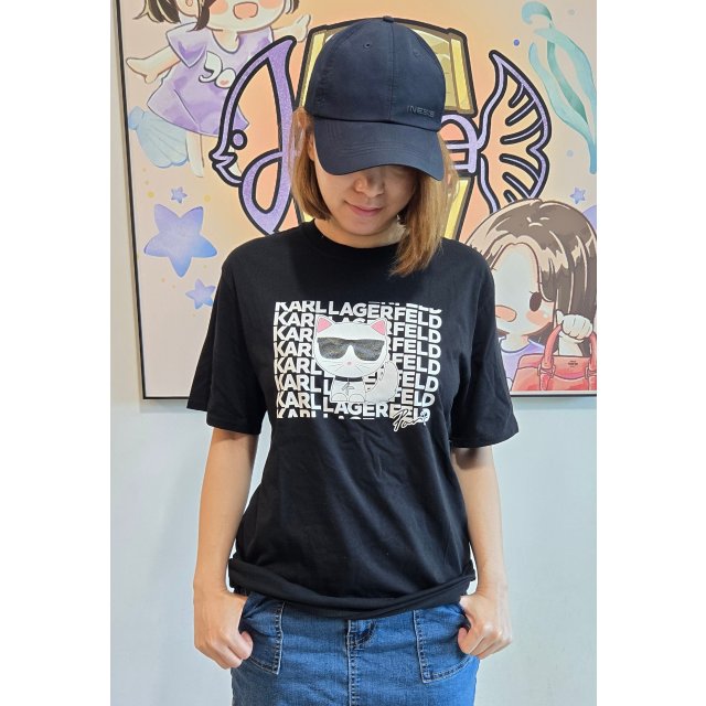 (香港現貨) L1WHF052Karl Lagerfeld 女裝Tee (Photos) 黑 Black XXS35"