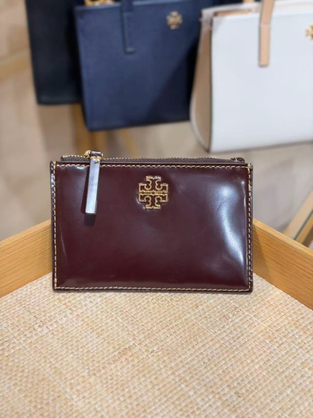 🈹清貨 Tory burch Britten 拉鏈卡包 Zip card case (漆皮啡 Patent Brown)