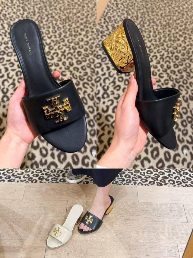 🈹清貨 Tory Burch Everly Block Heel 6cm 高踭拖鞋 (黑 Black)