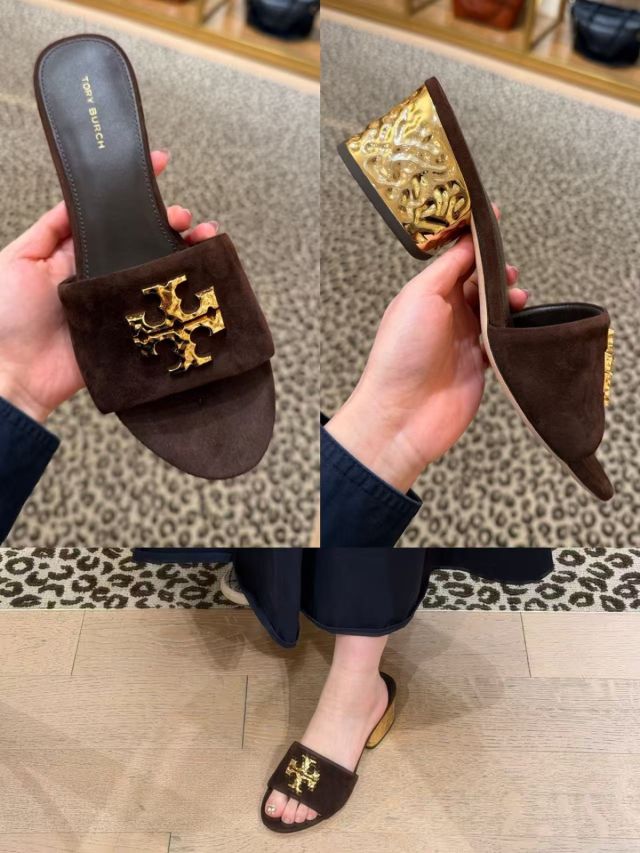 🈹清貨 Tory Burch Everly Block Heel 6cm 高踭拖鞋 (啡 Brown)