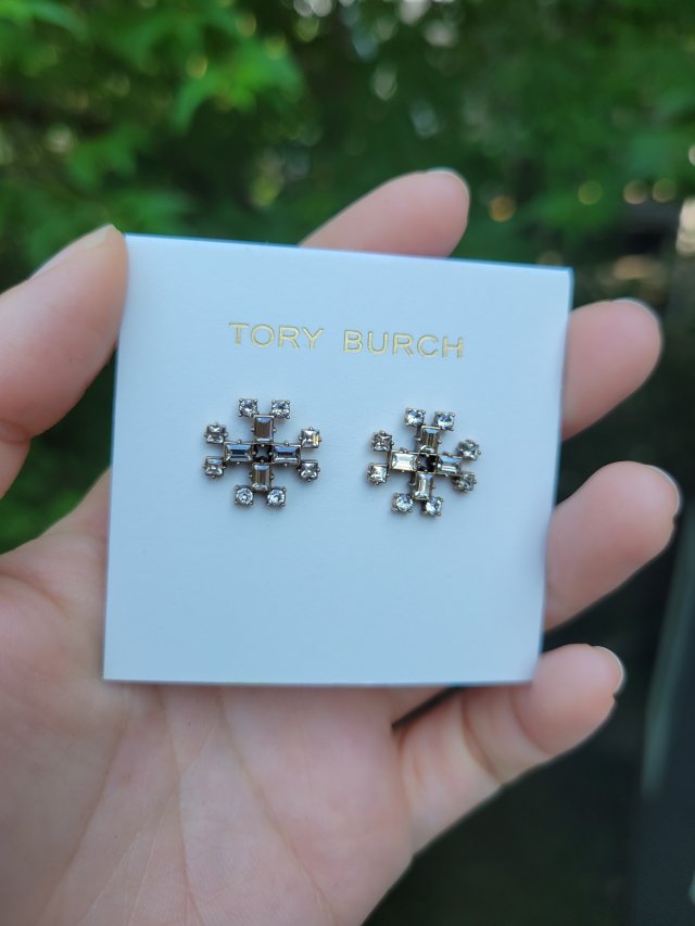 (加拿大現貨) 🈹️清貨 Tory Burch 專門店耳環 (水晶 crystal logo x clear)