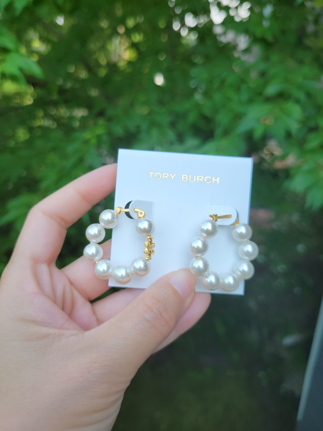 🈹️清貨 Tory Burch Britten cut out pearl hoop earring 耳環