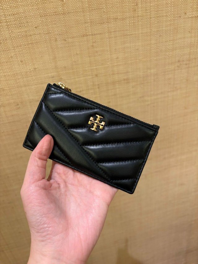 Tory Burch Kira Diamond Quilt Zip Card Case (Black)