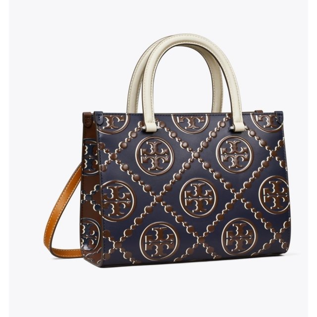 ⭐ Tory Burch T Monogram Contrast 細雙面 Tote (深藍色 tory navy / john coco)