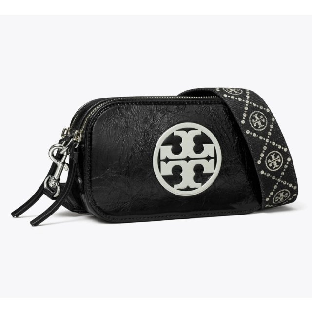 ⭐ Tory Burch Mini Miller Crinkle Crossbody Bag 雙拉鍊相機包 (巢皮黑色 Black)