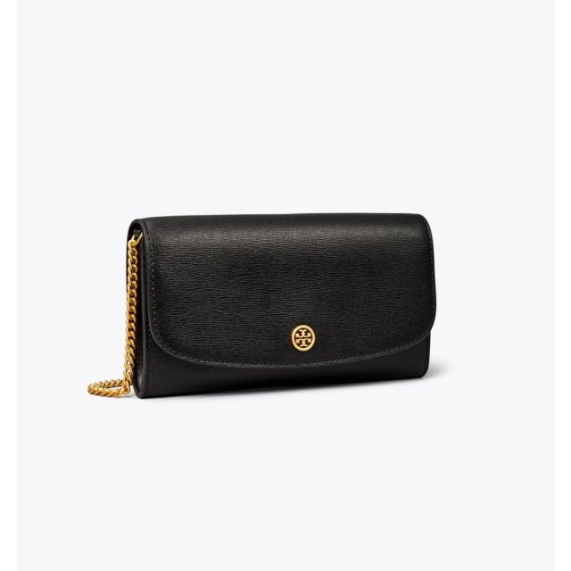 ⭐ Tory Burch Robinson Pebbled Chain Wallet (黑 Black)