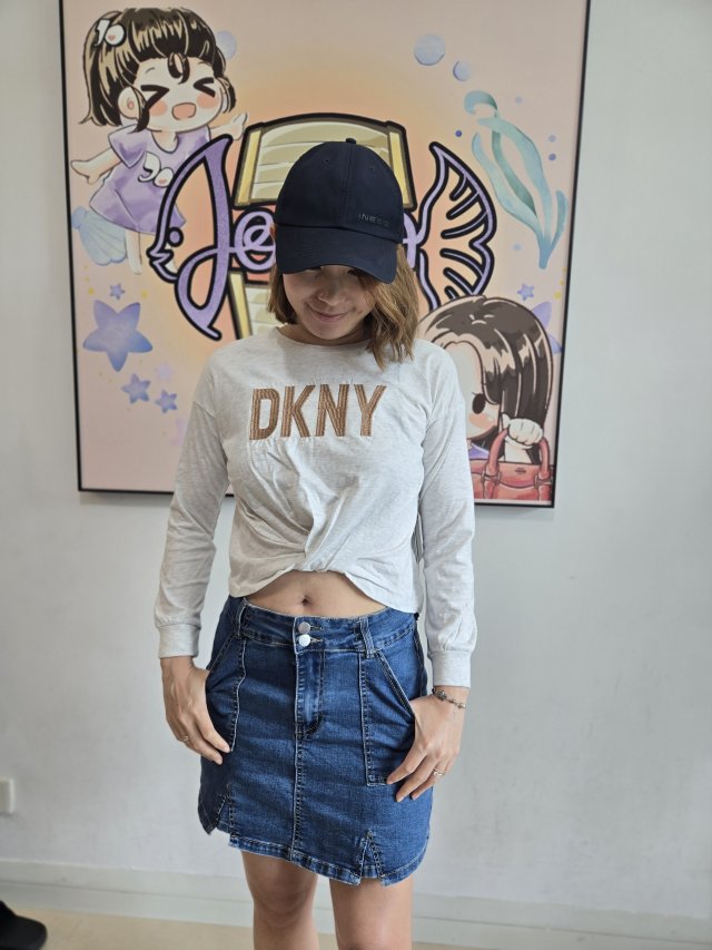 (香港現貨) DKNY 女童縛結薄長袖 Tee (米白 x 繡 DKNY)