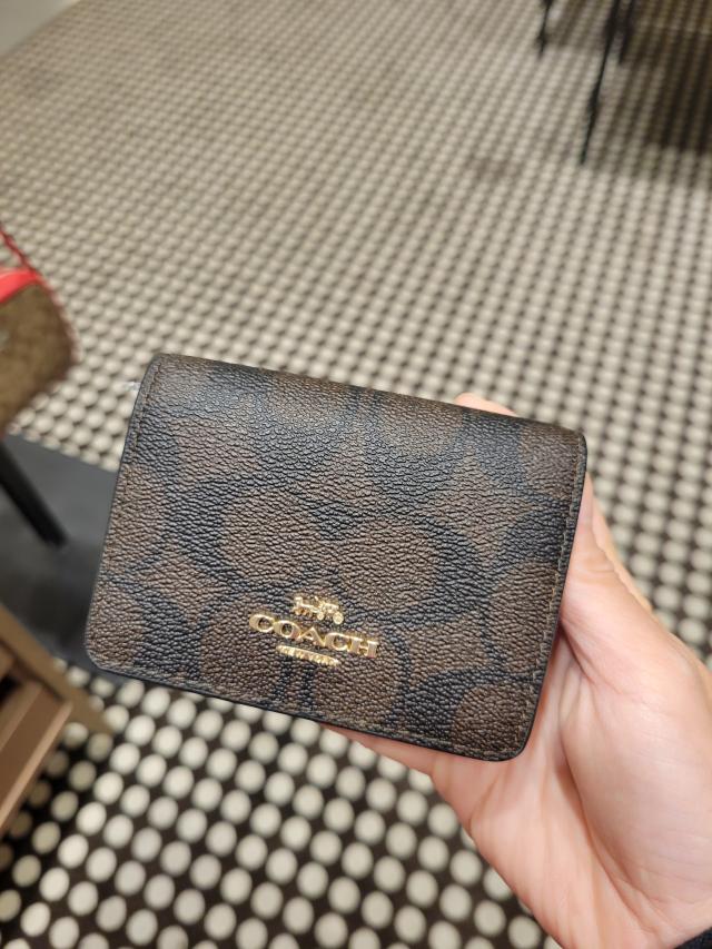 Coach Card Holder Wallet In Blocked Signature Canvas (Walnut/ Sand)