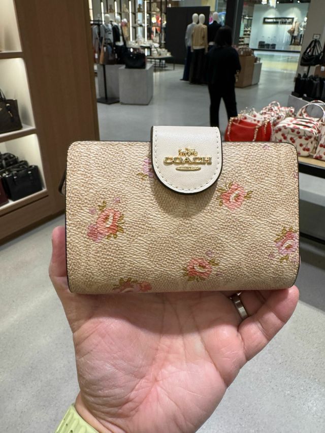 Coach Medium Corner Zip Wallet In Signature Canvas With Floral Print (Sand Multi)