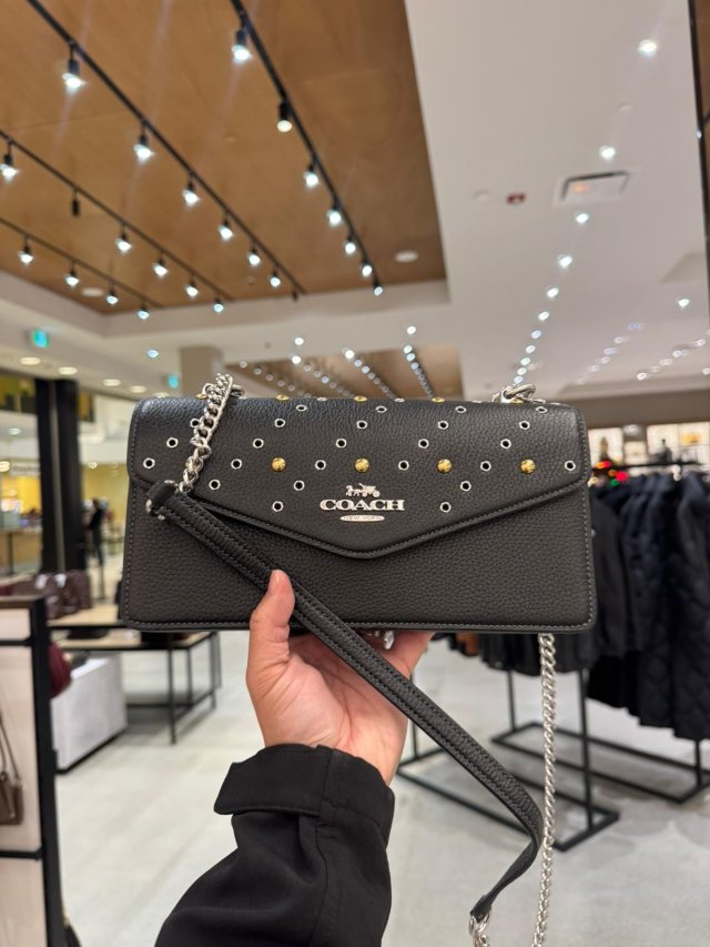 Coach Klare 信封斜背銀包 (黑鉚釘 Black Rivets)