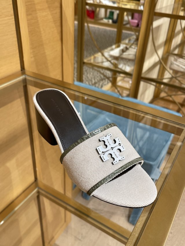🈹️清貨 Tory Burch Everly Block Heel 6cm 高踭拖鞋 (帆布 Canvas)