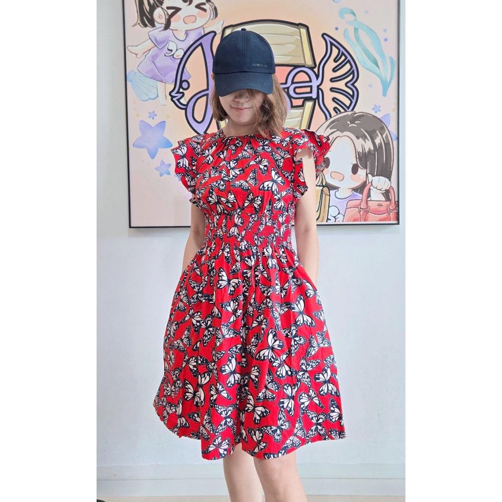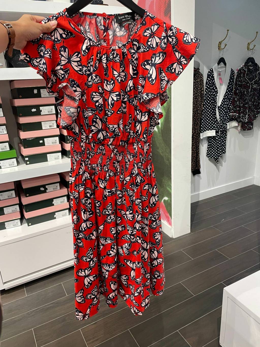 主頁 (香港現貨) 🈹️清貨 Kate Spade Butterfly 荷葉領連身裙 (紅) XS 36"