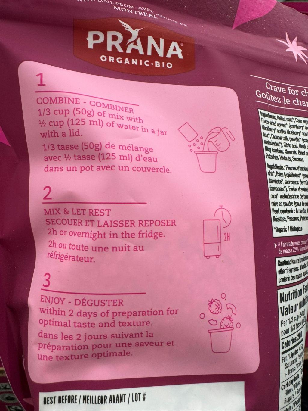 Prana 有機奇亞籽雜莓口味隔夜燕麥 800g