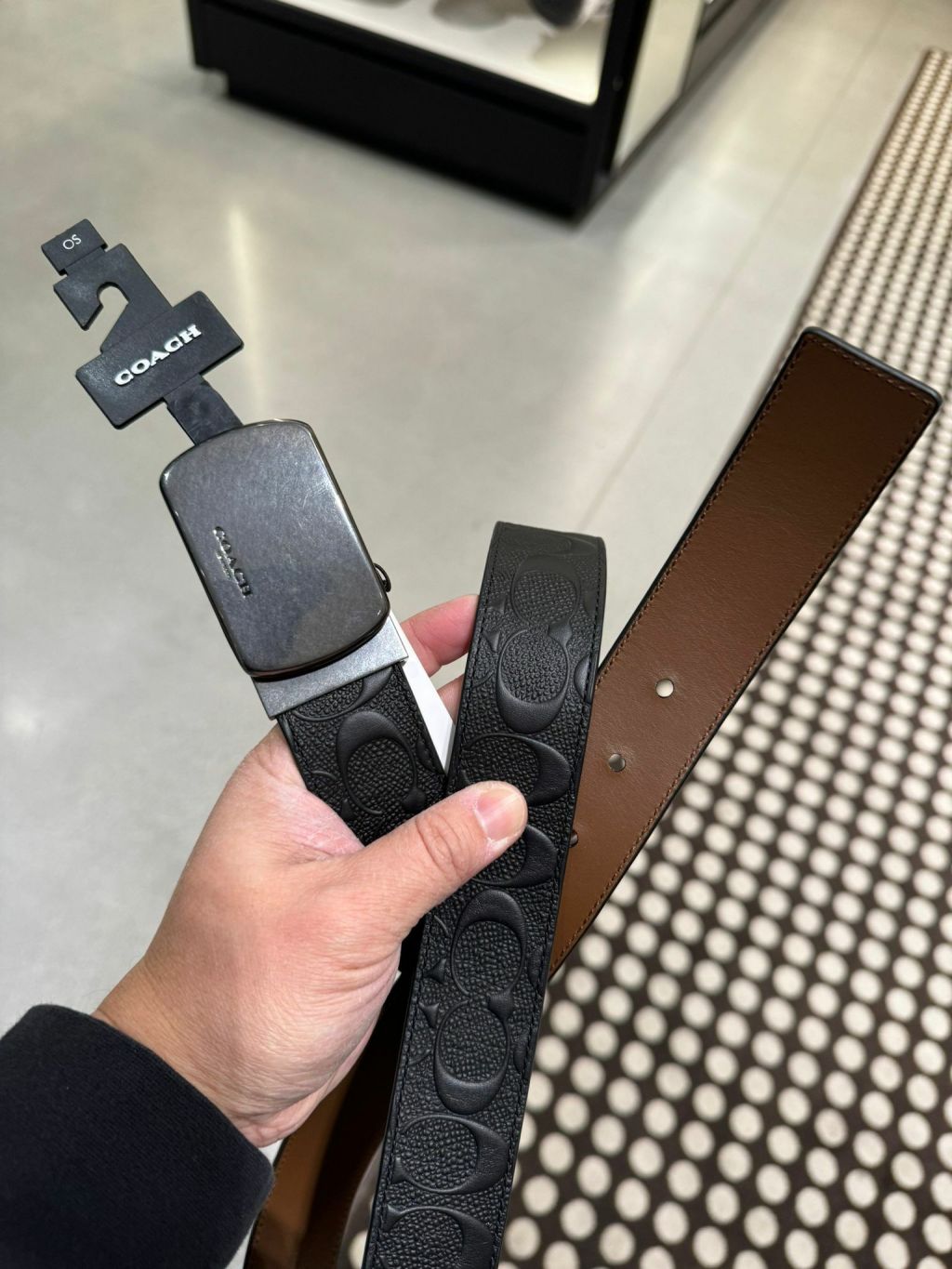 Coach 男裝雙面皮帶 38mm (壓紋黑 x 片扣)