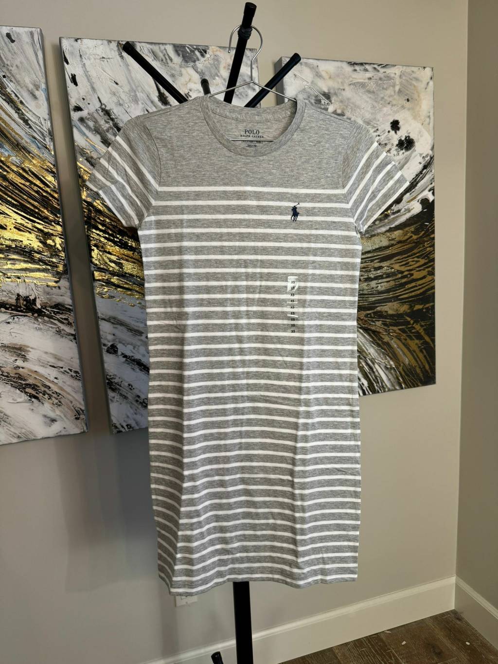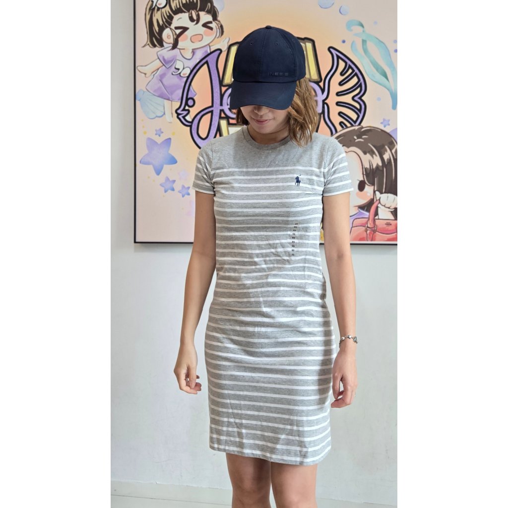(加拿大現貨) Polo Ralph Lauren 女裝短袖連身裙 (灰白間條) XS33"