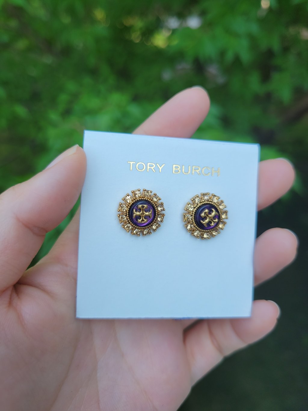 Home Tory Burch Kira Crystal Stud (Purple x Gold)
