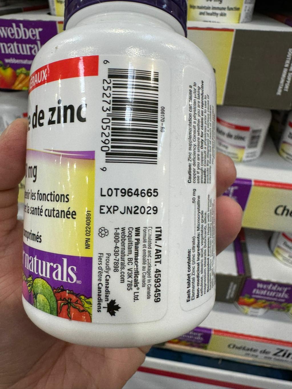 Webber Naturals Zinc chelate 強效免疫檸檬酸鋅 50mg 400粒 (2029 Sep)