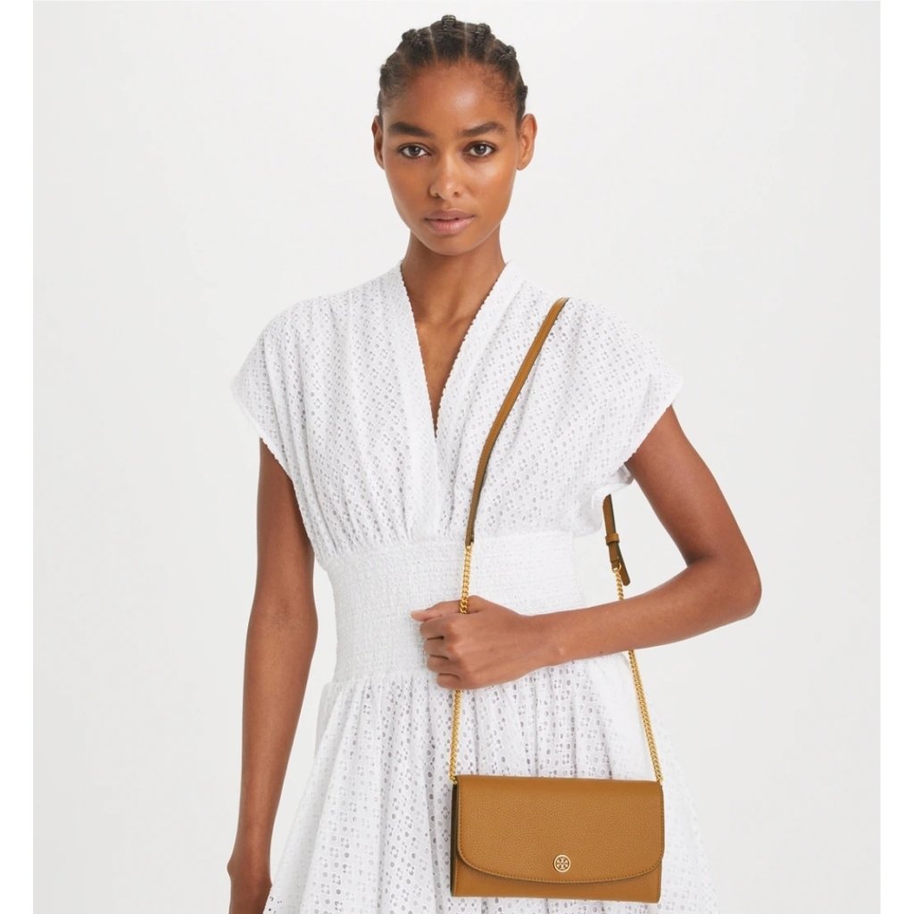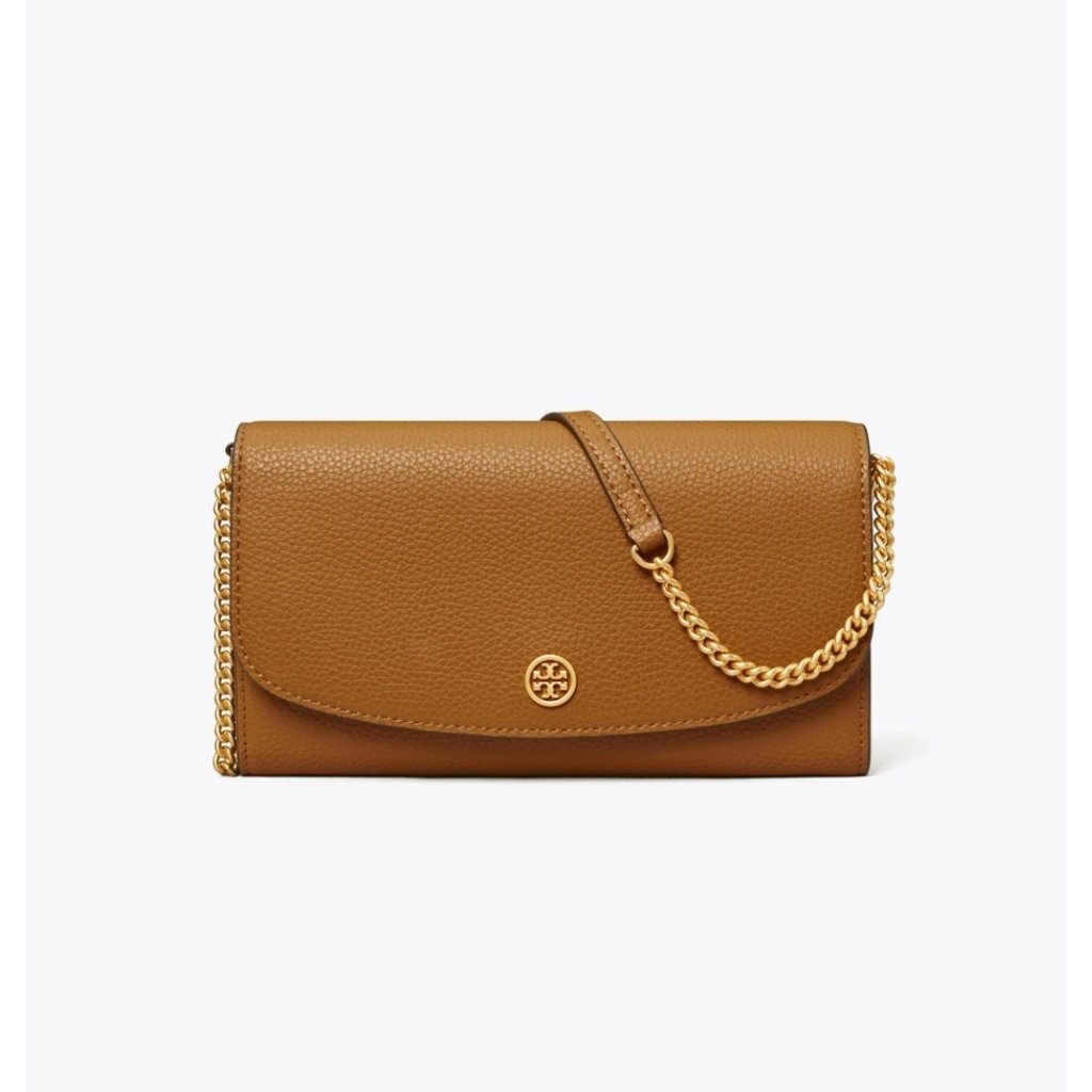 ⭐ Tory Burch Robinson Pebbled Chain Wallet (Tiramisu)