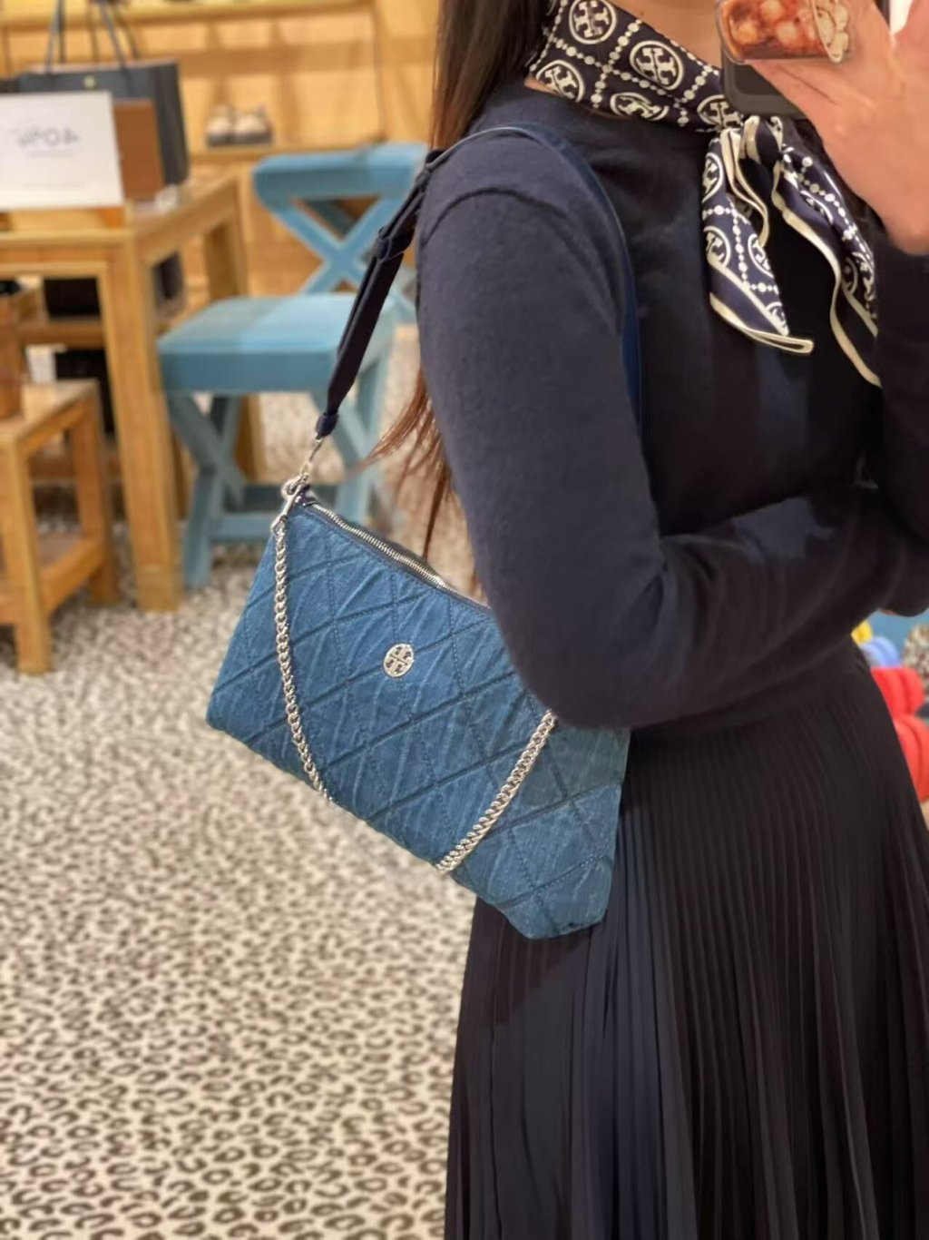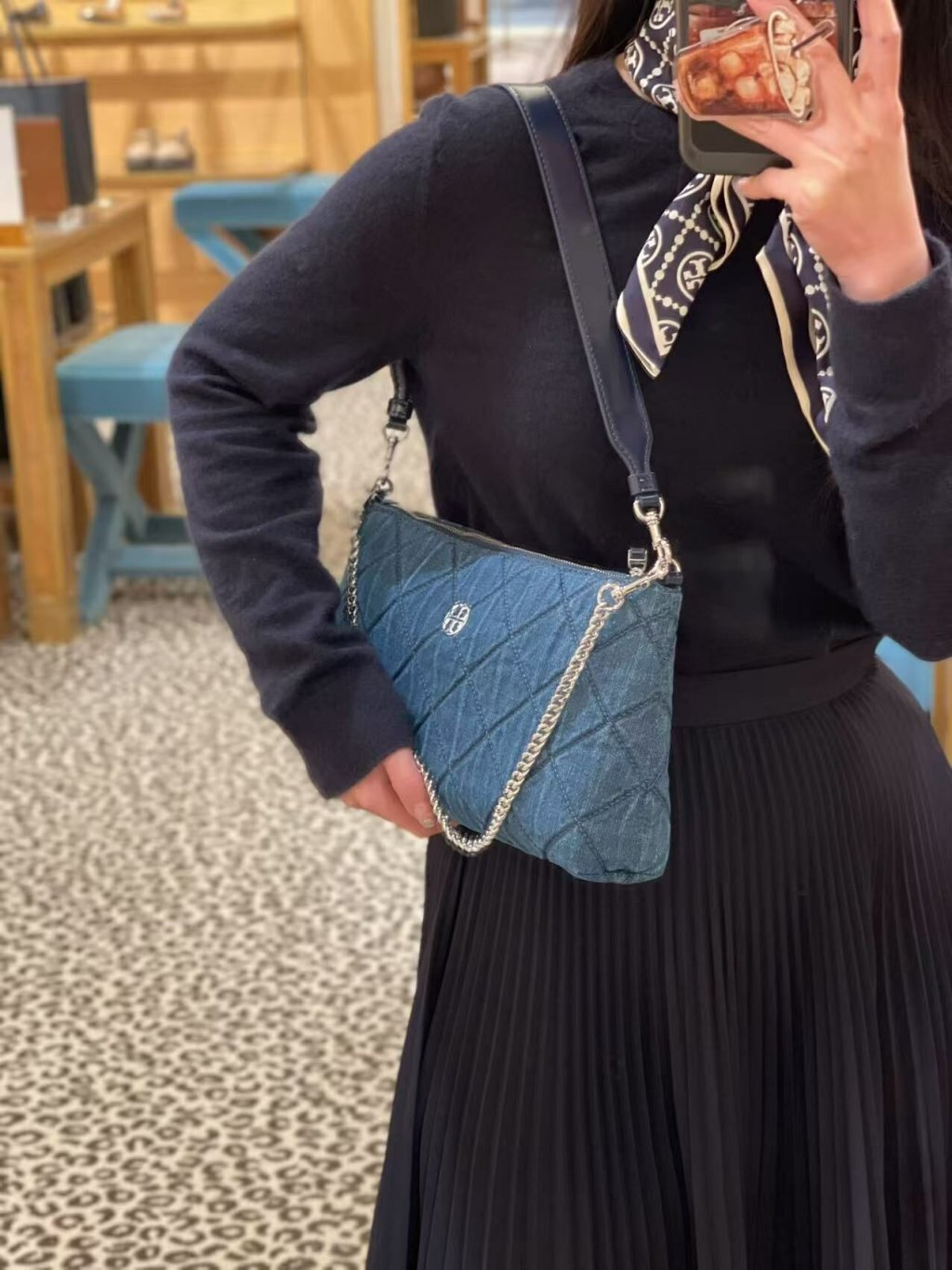 🈹清貨 Tory Burch Willa denim zip shoulder bag 牛仔肩包